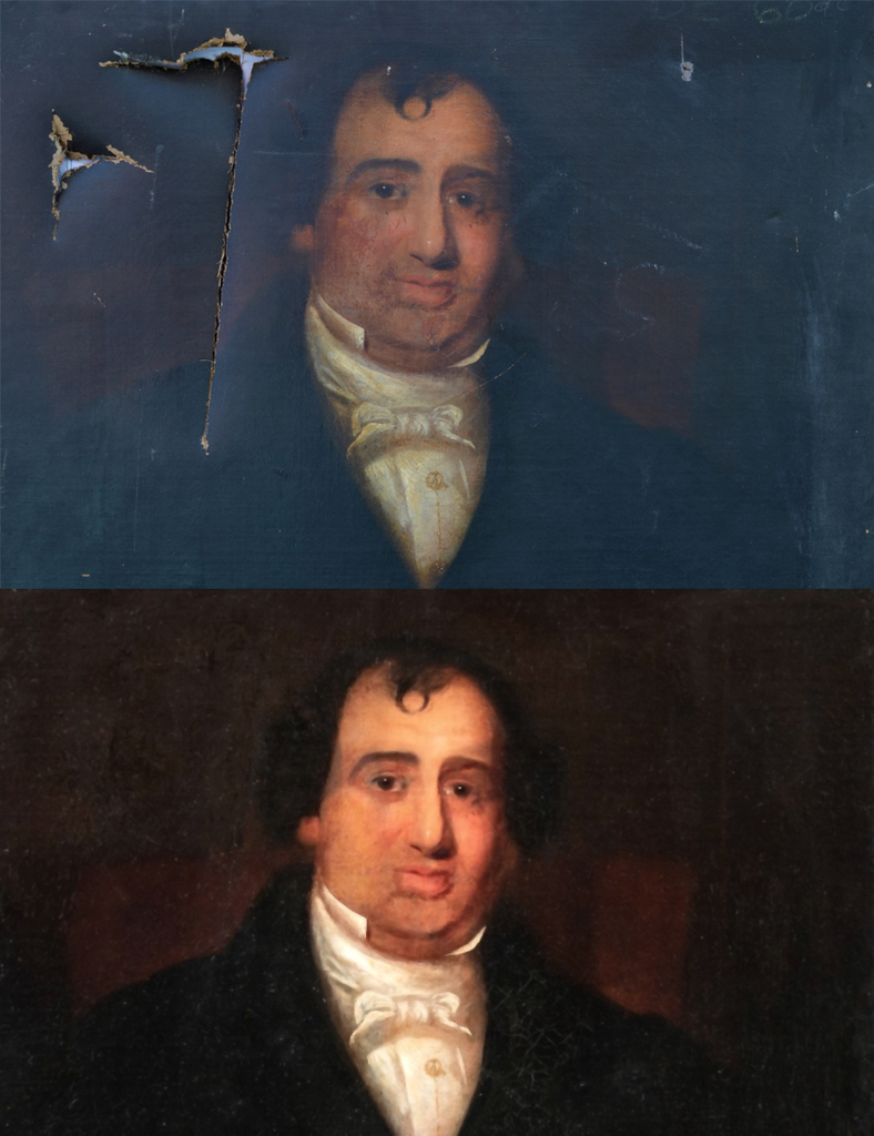 - An infrared camera to identify any elements not visible such as hidden signatures, preparatory drawings and hidden parts of the work;